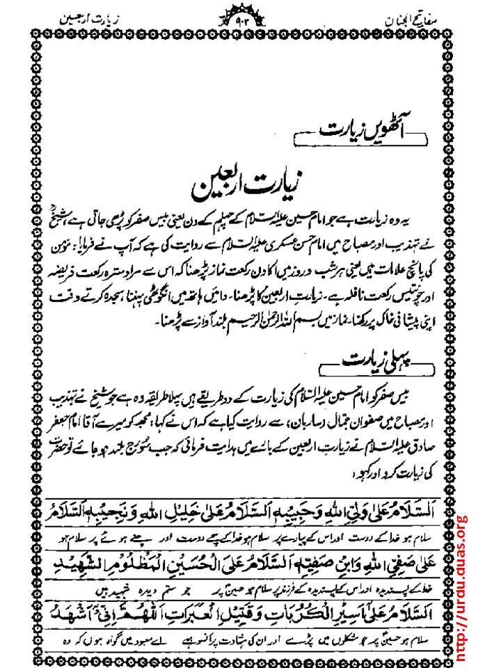 | زیارت اربعین کو عربی مے پڑھیں | ||