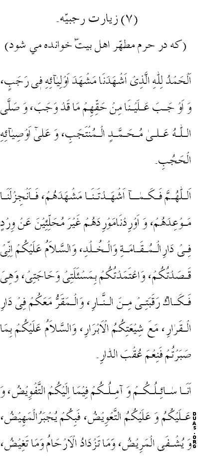 Ziarat Rajabiyah Sahifa Mahdi ( atfs) Supplication No. 7 Index of Ziarats Rajab Month