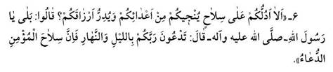 In addition to this, “Dua” will serve to earn further benefits and to perpetuate the existing blessings too, for the Infallibles (A.S.) consider “Dua” as both a “weapon” and a “shield”.
