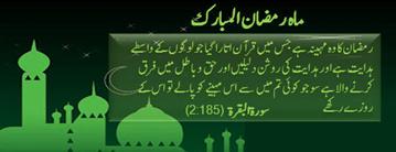 اے ایمان والو تم پر روزے فرض کیے گئے ہیں جو تم سے پہلے تھے تاکہ تم پرہیز گار ہو جاؤ ......اور برائی سے دور رہو ......اور اسکے دِن مقرّرر ہیں ........(قرآن 185:183-2) ے