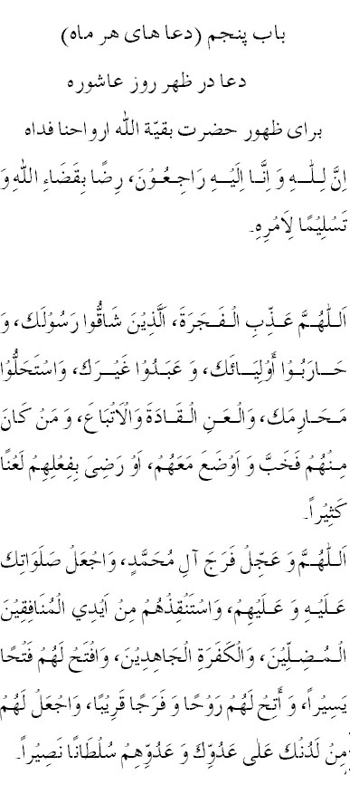 ۱۔ عاشورا کے دن امام زمانہ کے ظہور کی دعا