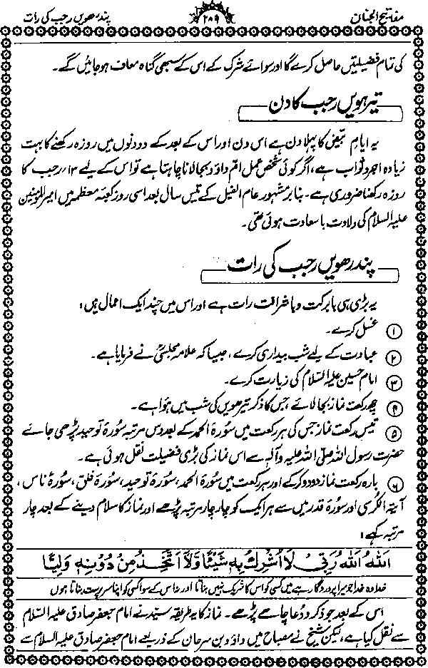 ۔رجب جنت کی نہروں میں سے ایک نہر کا نام ہے جو دودھ سے زیادہ سفید اور شہد سے زیادہ میٹھی ہے ۔جو ماہ رجب میں روزہ رکھے گا وہ اس نہر سے ضرور سیراب ہوگا ۔
