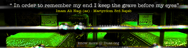 Imam al-Hadi, peace be upon him, is reported to have said, �I have besought Allah the Almighty and All-majestic not to disappoint any one who says this prayer in my shrine.�
